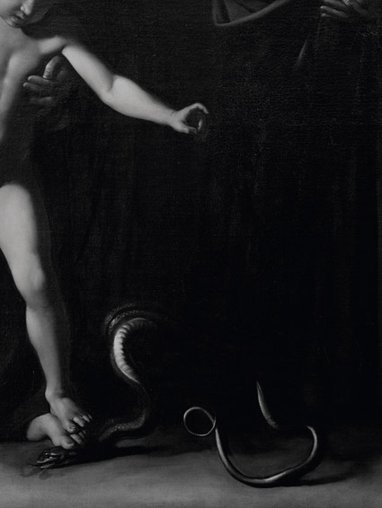 Jésus enfant d’après Le Caravage, La Madone des Palfreniers, 1506, Galerie Borghèse, Rome, 60 x 80 cm
