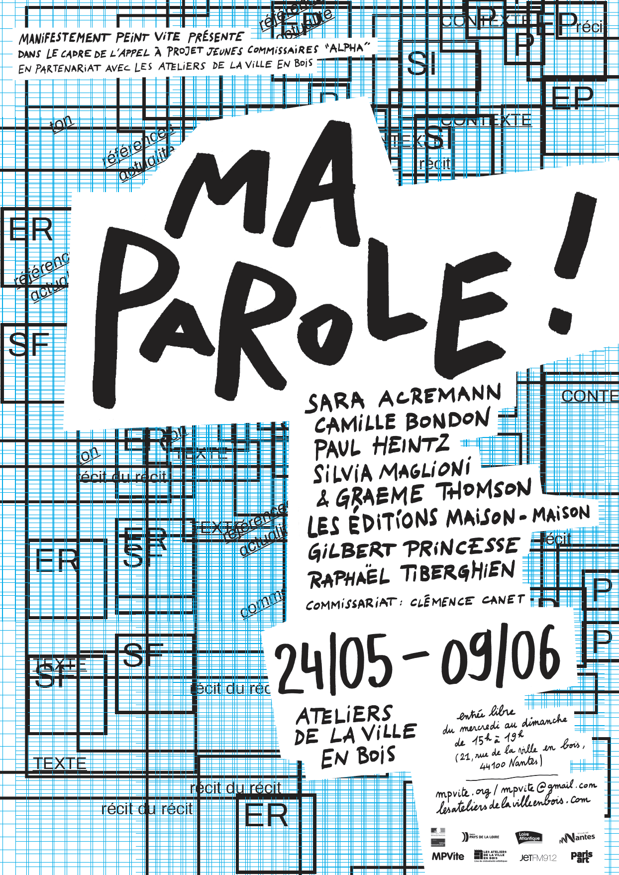 /2019 /Graphisme de l’exposition /Artistes invités : Sara Acremann, Camille Bondon, Paul Heintz, Silvia Maglioni et Graeme Thomson, Les éditions maison-maison, Gilbert Princesse, Raphaël Thiberghien