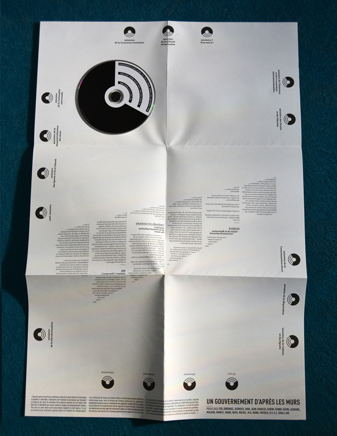 /2016 /Objet accompagnant l’exposition au Frac Pays de la Loire, Éditions 303D’avril à juillet 2015, Patrick Bernier est intervenu au sein des Maisons d’arrêt de Nantes, Angers, Laval, la Roche-sur-Yon et Fontenay-le-Comte. Il a mené, durant 4 jours dans chacun des établissements, des « ateliers de paroles » avec un petit groupe de personnes détenues. S’appuyant sur l’hypothèse que des manières de voir autrement les problèmes actuels pourraient venir de ceux qui les vivent les plus durement, l’artiste a proposé aux participants de s’imaginer à la tête d’un ministère de leur choix et d’user de ce pouvoir imaginaire pour reconsidérer la société extérieure ; idéalement sans murs ni surveillance.